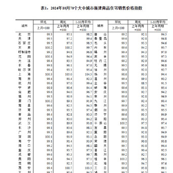 【国度统计局:10月各线城市商品住宅销售价钱环比降幅总体收窄 #10月一线城市二手住宅环比转涨#】11月15日ag九游会网站,国度统计局数据走漏,10月份,70个大中城市中,各线城市商品住宅销售价钱环比降幅收窄或转涨、同比降幅趋稳,房地产阛阓预期进一步改善。10月份,一线城市新建商品住宅销售价钱环比下落0.2%,降幅比上月收窄0.3个百分点。其中,上海和深圳分辨高潮0.3%和0.1%,北京和广州均下落0.7%。一线城市二手住宅销售价钱环比由上月下落1.2%转为高潮0.4%,为近13个月以来初度转涨。其中,北京、上海和深圳分辨高潮1.0%、0.2%和0.7%,广州下落0.4%。10月份,二线城市新建商品住宅销售价钱环比下落0.5%,降幅比上月收窄0.2个百分点;二手住宅环比下落0.4%,降幅收窄0.5个百分点。三线城市新建商品住宅销售价钱环比下落0.5%,降幅收窄0.2个百分点;二手住宅环比下落0.6%,降幅收窄0.3个百分点。10月份,70个大中城市中,新建商品住宅销售价钱环比高潮城市有7个,比上月加多4个;二手住宅环比高潮城市有8个,比上月加多8个。